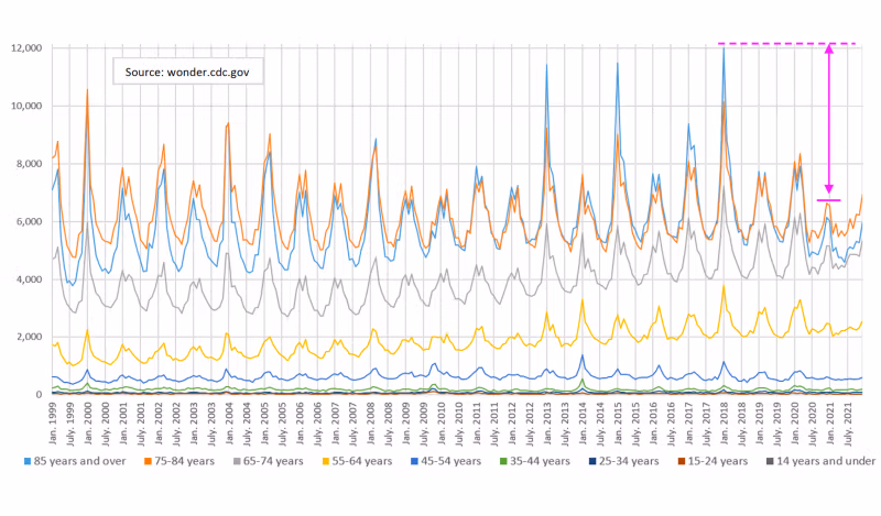 Kodėl 2021 m. tiek daug mirčių vidutinio amžiaus žmonių? By Genevieve Briand | Balandis 19, 2022 DALINTIS | SPAUSDINTI | SIŲSTI EL. PAŠTU Kai kurie manė, kad 2020 m. balandžio mėn. mirčių skaičius buvo per didelis ir pateisino gyvenimo sustabdymą, tačiau 2021 m. sausio mėn. skaičiai buvo blogesni – mirtingumo procentas 2021 m. yra... Skaityti daugiau.